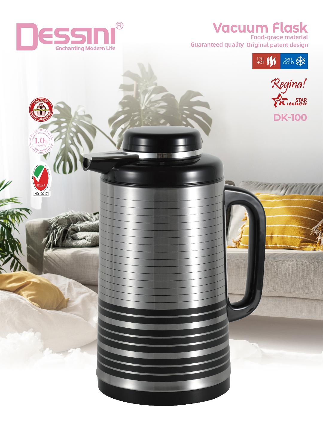 Dessini stainless steel tea & coffee vacuum flask 1L black/silver