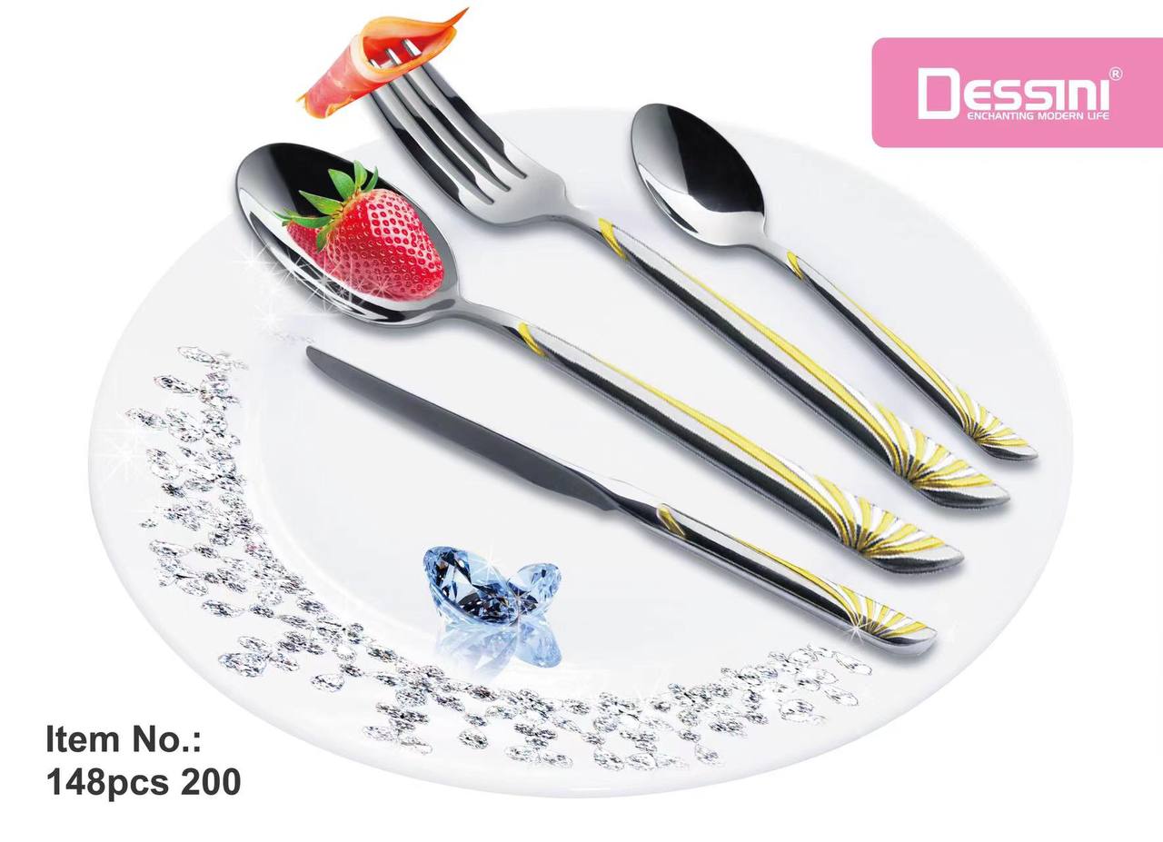 - Include 148 piece utensils: 30 X Dinner Spoon, 30 X Dinner Fork, 12 X Tea Spoon, 12 X Cake Fork, 12 X Fruit Knife, 12 X Coffee Spoon, 12 X Ice Spoon, 12 X Ice Cream Spoon, 2 X Honey Spoon, 2 X Butter Knife, 1 X Vegetable Spoon, 1 X Sugar Tong, 1 X Soup Spoon, 2 X Soup Ladle , 1 X Gravy Ladle, 3 X Rice Server, 3 X Sugar spoon, 2 x Soup Ladle