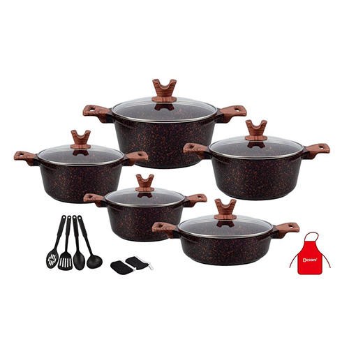 | Set Includes | 20 CM (2.4 Liters) , 24 CM (4.4 Liters) , 28 CM (6.6 Liters) , 32 CM (9.6 Liters) casserole & 28 CM (4 Liters) shallow cooking pot, 7pcs cooking tools |