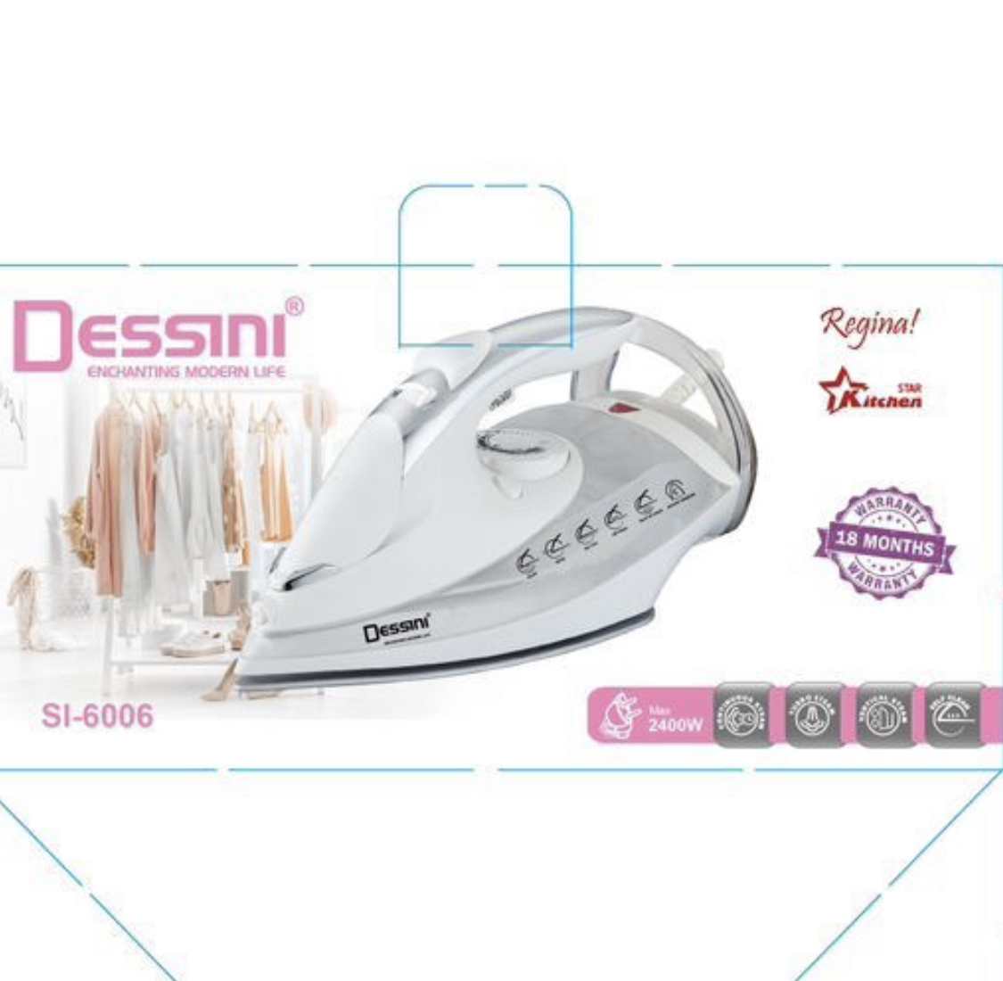 this steam iron with self clean function from Dessini is designed to provide hassle-free and smooth ironing with sdjustable steam. It allows vertical steaming without the risk if bunching up the fabric.