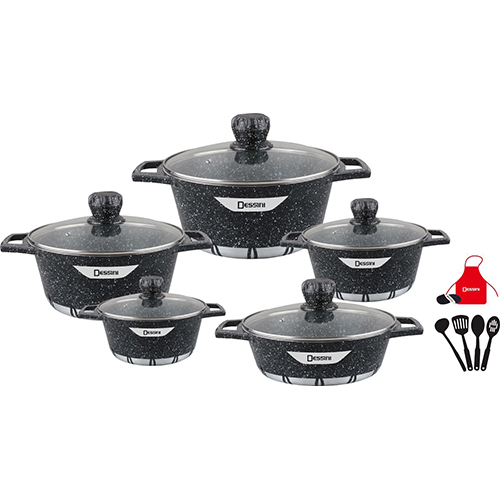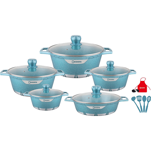 Dessini products are the perfect solution for cooking healthy and dietetic food without fat and very easy to clean. Dessini products are made of high-quality raw material by the expert designer team in various and pleasant styles. Before using the pot for the first time wash in hot soapy water, dry thoroughly, and season lightly with oil/butter. Low/Medium heat is sufficient for obtaining the best cooking results. Never overheat the pot (a maximum temperature of 200-240C is indicated on the packing for each specific range). Cast aluminum is a very good conductor of heat and continual overheating could damage the coating. Do not heat the pot when it’s empty. The pot must be used for cooking only. Do not use the pot for conserving (stocking) the food for longer periods as some aggressive food can damage the coating. Use only wooden and nylon utensils and do not cut the food in the pot. After use leaves the pot to cool for a while, clean it in hot soapy water and dry it thoroughly. Some aggressive detergents can damage the product. Wash by hand is suggested. The slight color change of the coating inside the pot does not have any negative effect on the quality of the product or its effectiveness during use. Bakelite handles and knobs of pots and knobs of the lids are ovenproof from 180-240C (follow induction on the packaging of the product). Dessini products are suitable for all types of cookers (gas, electric, ceramic/halogen hobs, oven)