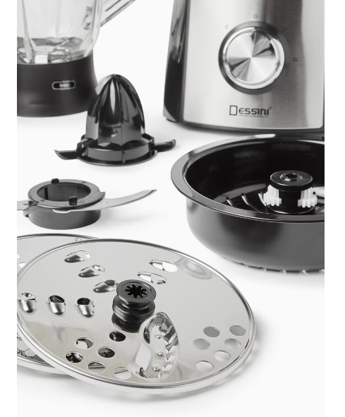 - multy functional – juicing, blending, doughing, chopping, emulsifying, slicing, shredding, citruce juicer